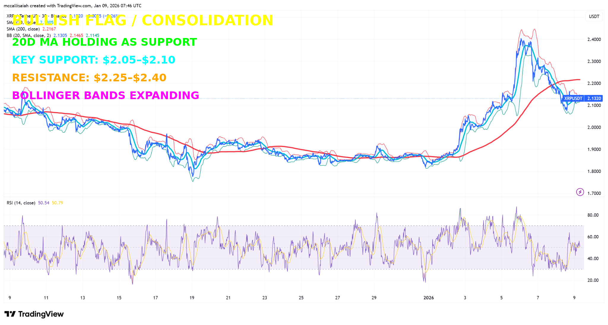 On the charts, XRP is consolidating after a sharp impulse from the $1.85 base into the $2.40 highs. Support sits around $2.05 to $2.10, with the 20-day average acting as dynamic support. Volume faded on the pullback, a classic digestion pattern rather than distribution.